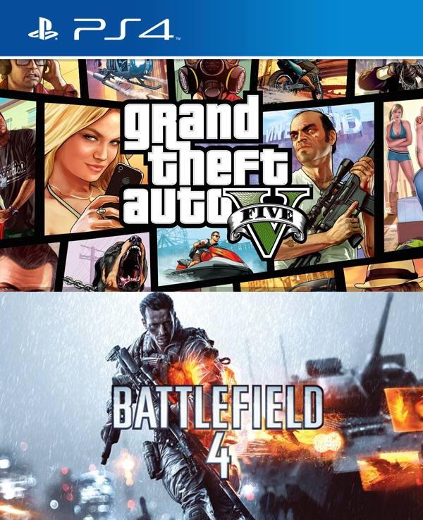 2 JUEGOS EN 1 GRAND THEFT AUTO V MAS BATTLEFIELD 4 PS4 $ 21,600 CLP