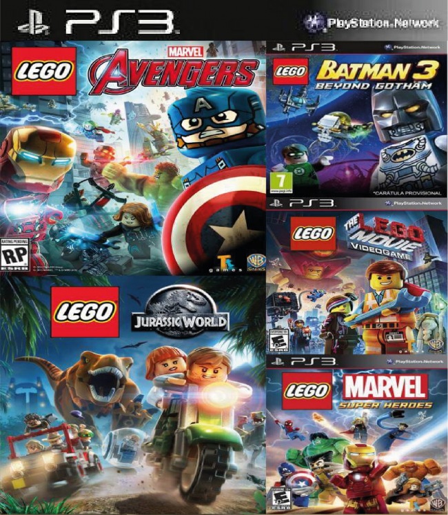 5 juegos en 1 LEGO MARVELS AVENGERS LEGO JURASSIC WORLD THE LEGO MOVIE VIDEOGAME LEGO MARVEL SUPER HEROES LEGO BATMAN 3 BEYOND GOTHAM Ps3